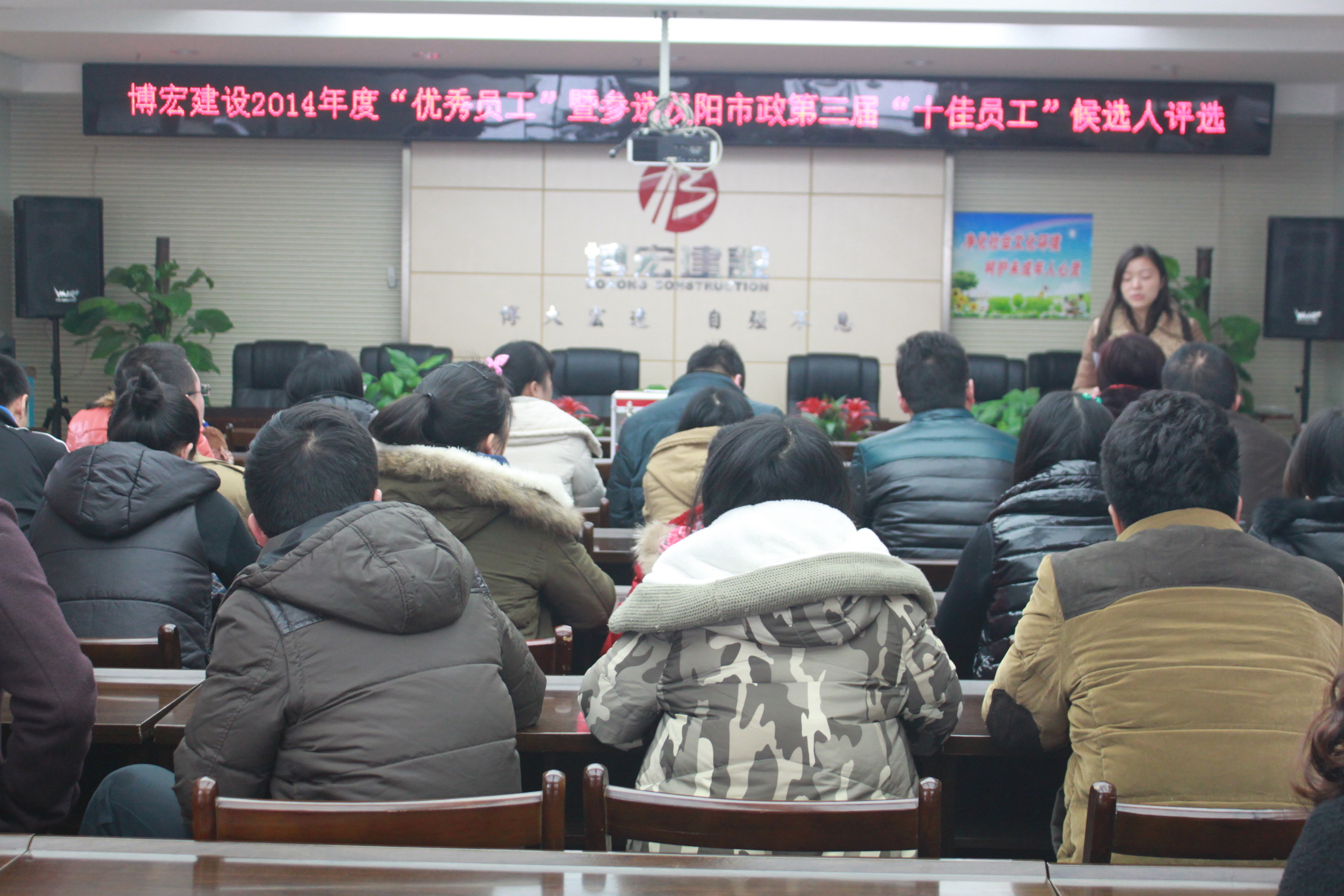 12月29日下午,武漢博宏建設(shè)有限公司在會(huì)議室舉行了2014年度“優(yōu)秀員工”暨參選漢陽市政第三屆“十佳員工”候選人評(píng)比活動(dòng),旨在弘揚(yáng)先進(jìn),樹立典型,營造積極向上、爭(zhēng)當(dāng)先進(jìn)的工作氛圍。博宏公司領(lǐng)導(dǎo)班子、各部室行政人員及各項(xiàng)目部成員參加了評(píng)選活動(dòng)。