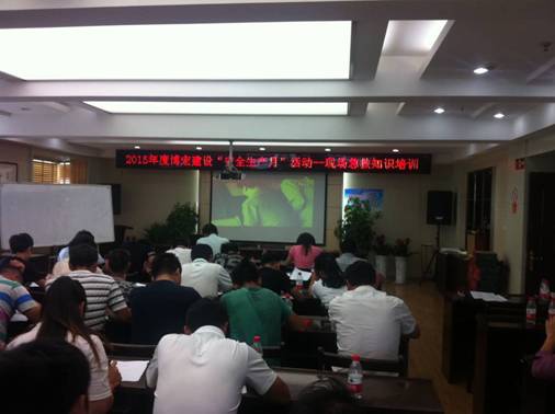 為了豐富企業(yè)安全教育內(nèi)容,帶動一線員工學習應(yīng)急救護知識,提高自救互救能力,武漢博宏建設(shè)有限公司于6月10日在公司會議室舉辦了一期現(xiàn)場急救知識的培訓。培訓以播放視頻影碟的方式,從觸電、心肺復(fù)蘇、止血、包扎、固定及搬運、中毒等幾個方面,詳細描述了現(xiàn)場急救應(yīng)采取的方法和措施,公司項目部安全管理人員、現(xiàn)場管理人員、現(xiàn)場農(nóng)民工等均參加了此次培訓。