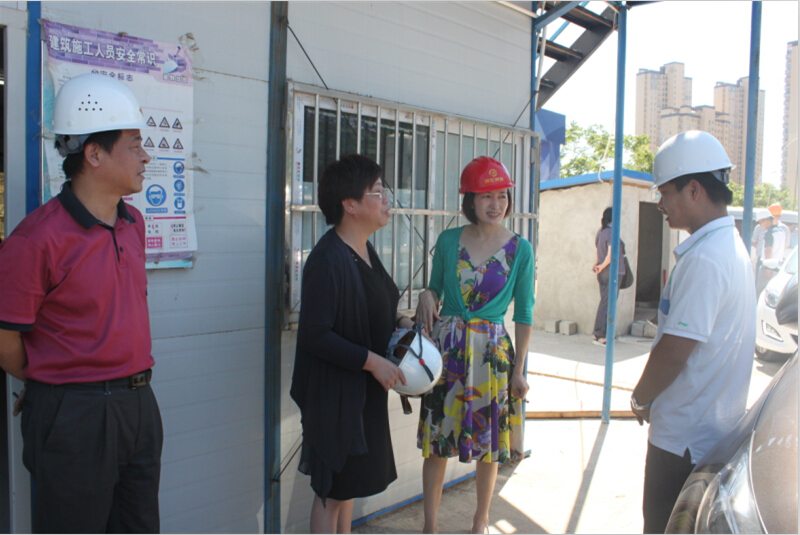 在現(xiàn)場,博宏建設(shè)黨支部書記周紅向喻主席、謝主任詳細(xì)介紹了芳草小學(xué)建設(shè)基本情況和職工工作生活情況,了解到施工單位為避開中午最高溫時(shí)段,對作息時(shí)間進(jìn)行了適當(dāng)調(diào)整,中午時(shí)間不安排建設(shè)者在室外作業(yè),對此喻主席表示贊許。她還向工地負(fù)責(zé)人建議,當(dāng)前天氣炎熱,在外作業(yè)一定要?jiǎng)谝萁Y(jié)合、防止中暑。