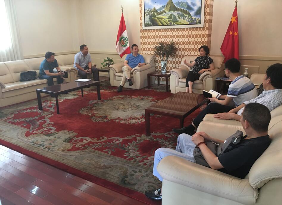 考察團(tuán)隊(duì)會(huì)見中國(guó)駐秘魯大使館經(jīng)濟(jì)商務(wù)參贊處郝沁梅參贊(右四)