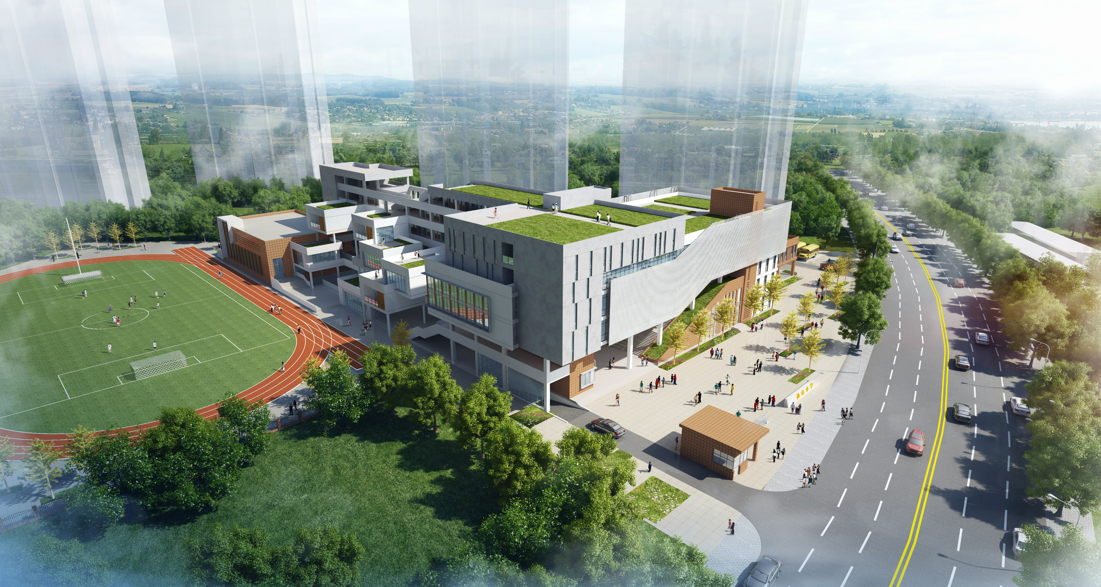 建設(shè)內(nèi)容:1棟六層的教學(xué)綜合樓,配套建設(shè)學(xué)校大門、道路及停車場、運動場地、區(qū)域內(nèi)給排水管網(wǎng)、電力電信及消防、綠化等工程。