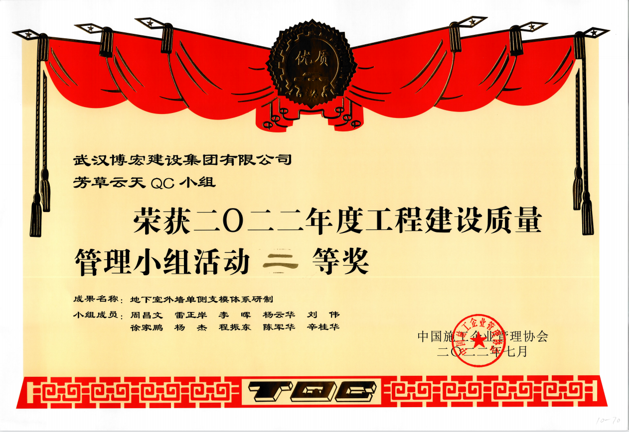 近年來(lái),公司成立了多個(gè)QC小組,積極參與公司技術(shù)研發(fā)工作,以技術(shù)創(chuàng)新提升市場(chǎng)核心競(jìng)爭(zhēng)力,努力打造新的增長(zhǎng)極。目前,我司的QC小組課題始終堅(jiān)持問(wèn)題導(dǎo)向原則,緊扣技術(shù)創(chuàng)新、施工生產(chǎn)、質(zhì)量管理等重點(diǎn)、難點(diǎn)問(wèn)題,積極開展QC小組攻關(guān),并參與各級(jí)協(xié)會(huì)組織的QC競(jìng)賽活動(dòng),獲得省I類成果9項(xiàng)、II類成果5項(xiàng)、III類成果4項(xiàng),其中1項(xiàng)成果榮獲武漢建筑業(yè)協(xié)會(huì)QC銀獎(jiǎng)。